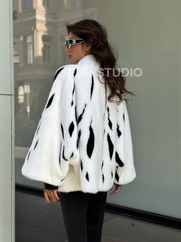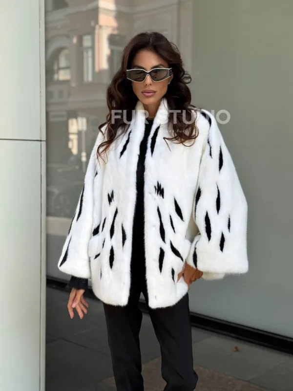 Белый норковый полушубок с рисунком доступна для покупки в нашем шоуруме Furs Studio в . У нас так же есть доставка во все города России. Добавьте немного роскоши в свой гардероб с этой шубой, которая будет служить вам многие годы.