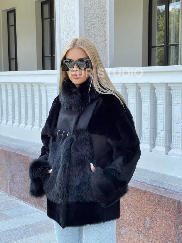 Черная дубленка из натуральной овчины. Модель предлагается в размерах от 42 до . Оптимальная длина моделей 60-65 см подчеркивает линии вашей фигуры. Эта дубленка станет неотъемлемой частью гардероба для тех, кто предпочитает роскошь и утонченность натуральной кожи.