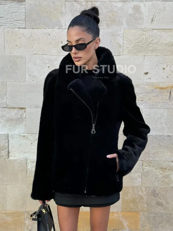 Черная косуха (куртка) из скандинавской норки 101071