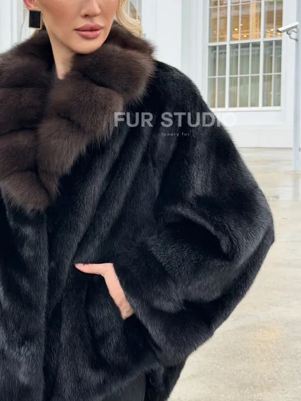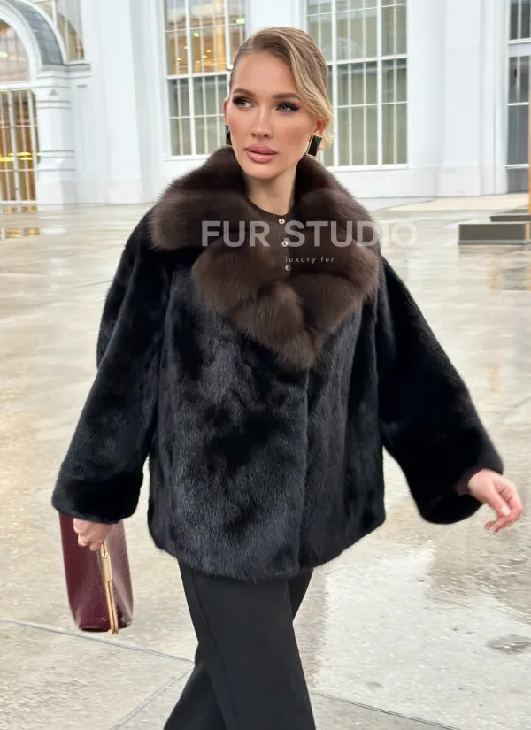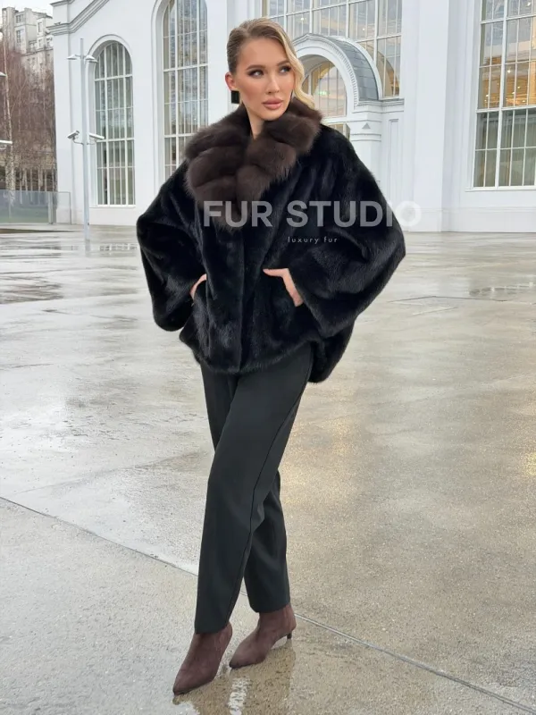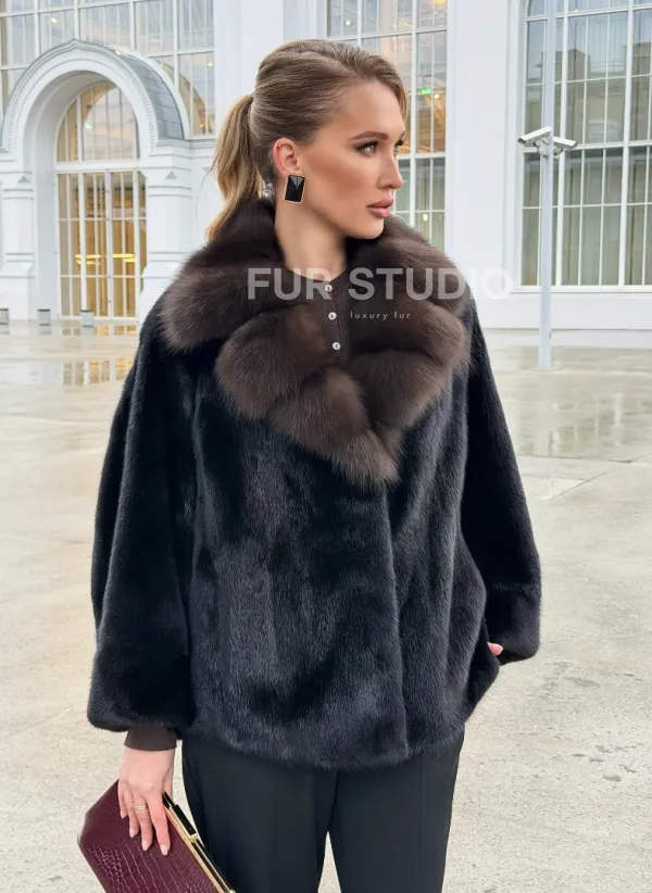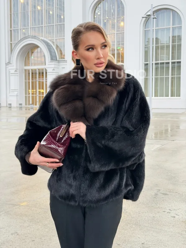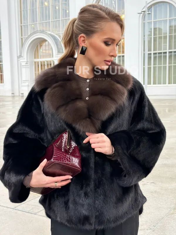 Черный норковый жакет с воротником куницы доступна для покупки в нашем шоуруме Furs Studio в . У нас так же есть доставка во все города России. Добавьте немного роскоши в свой гардероб с этой шубой, которая будет служить вам многие годы.