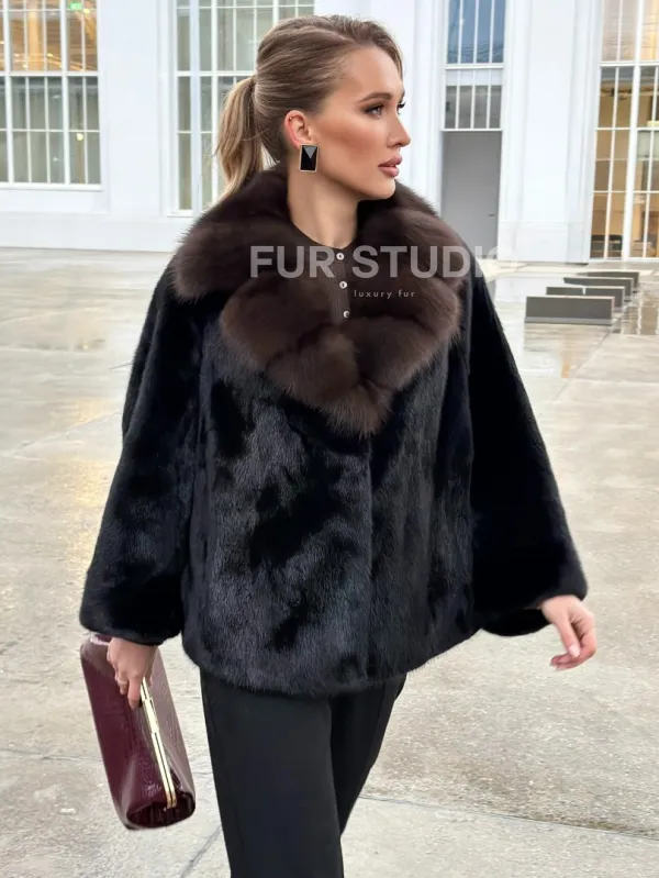 Черный норковый жакет с воротником куницы 102677