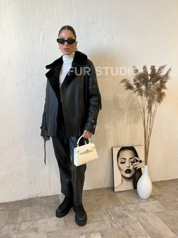 Необычный пояс по окантовке дубленки смотрится оригинально. Модель подойдет к базовому гардеробу, сочетается с джинсами и леггинсами. Если добавить к lookу грубые ботинки и кожаный рюкзак, то вы будете выглядеть, как с обложки. Купить дубленку авиатор в черном цвете из натуральной овчины могут дамы, которые разбираются в трендах и идут в ногу со временем.
