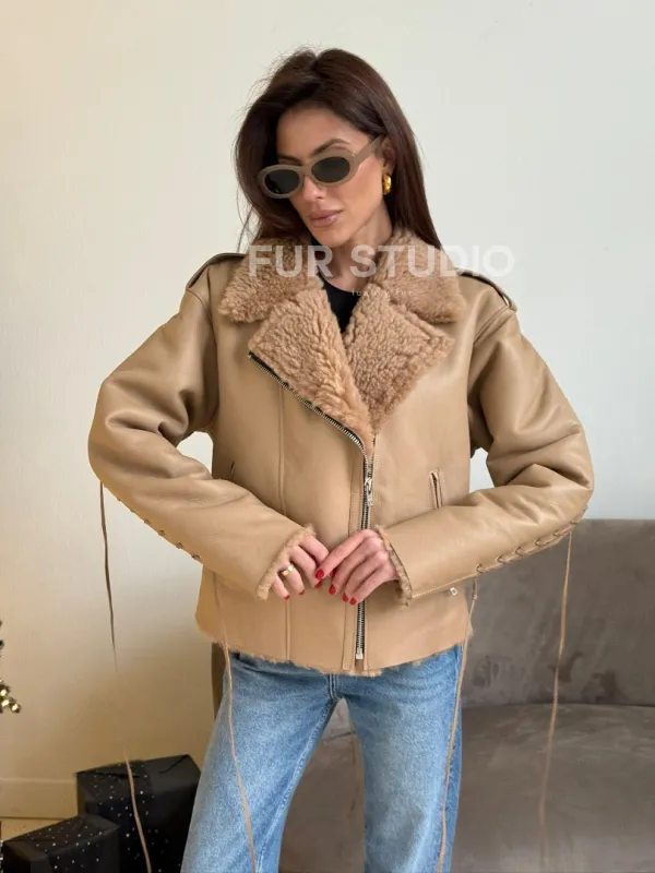 Дубленка - куртка со шнуровкой на спине 100843