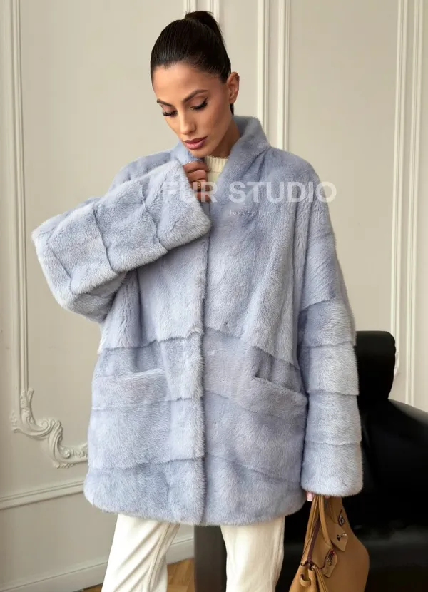 Голубая норковая шуба - жакет 102728