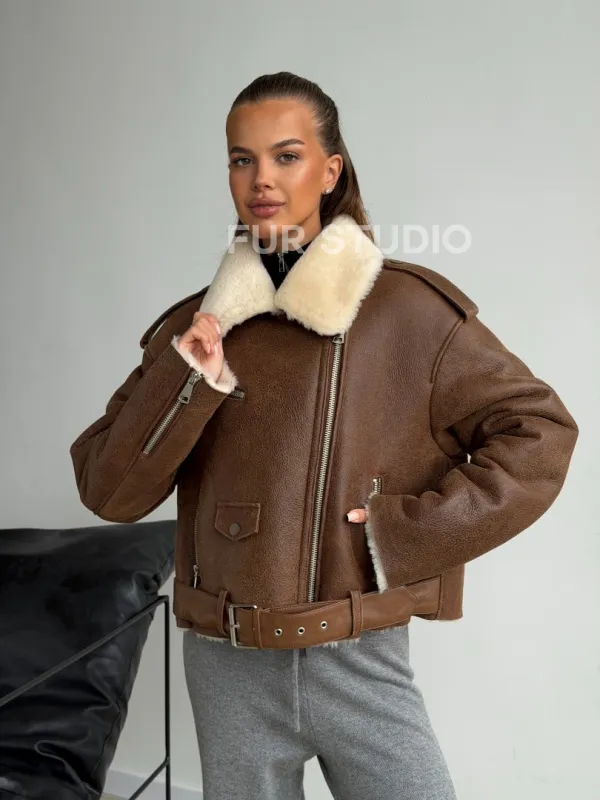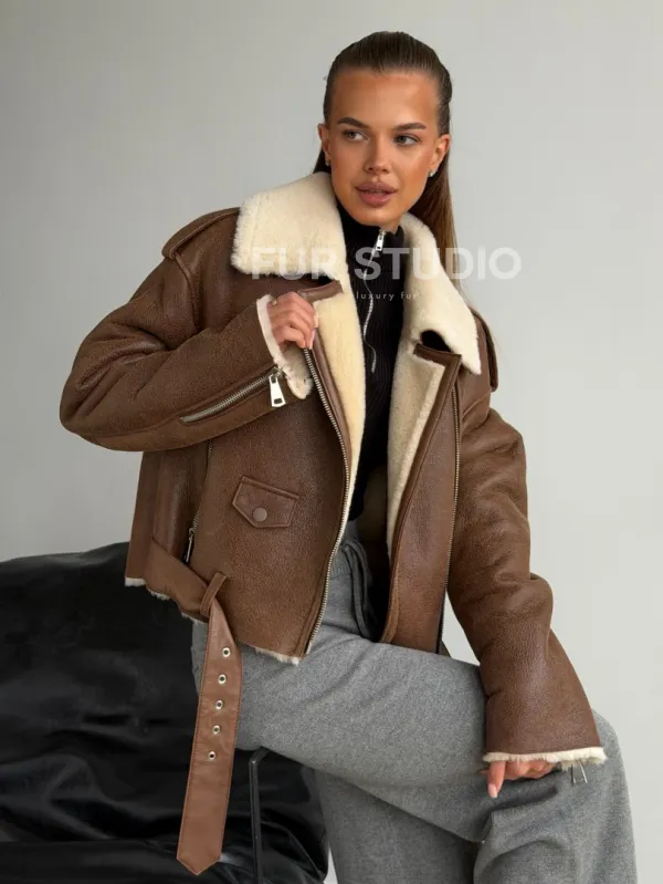 Короткая косуха-дубленка из овчины 102602