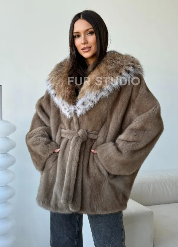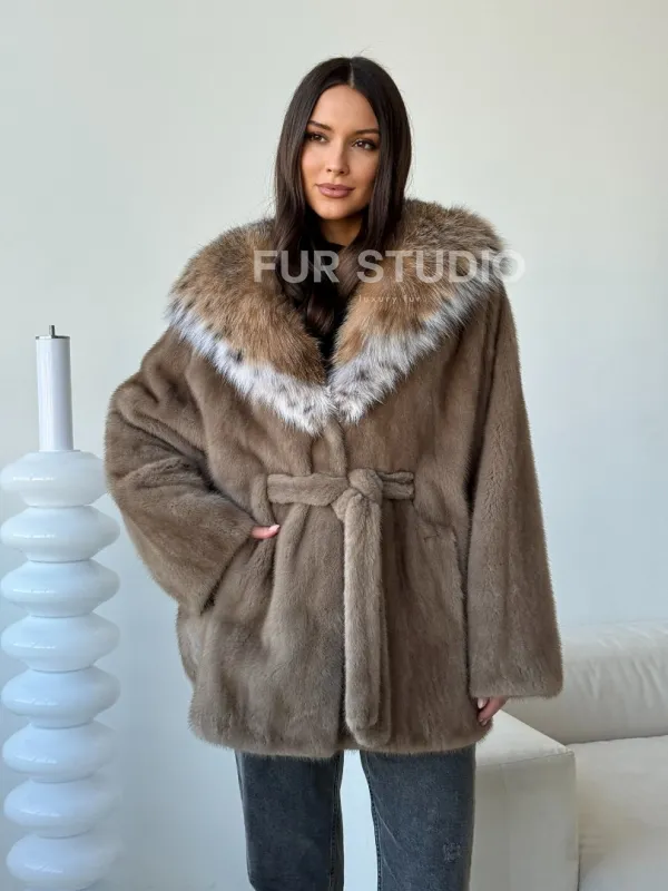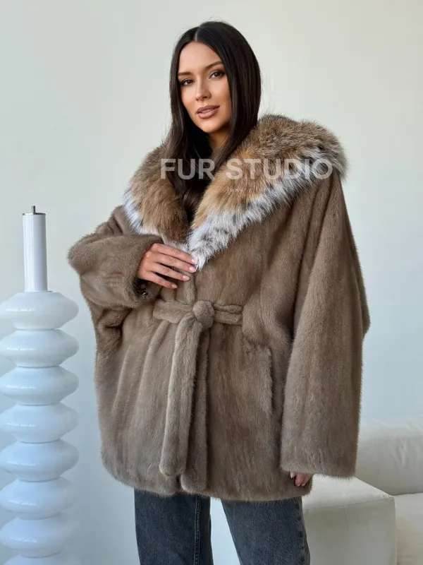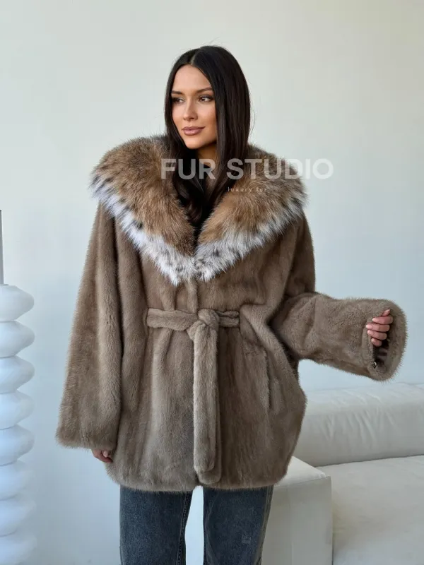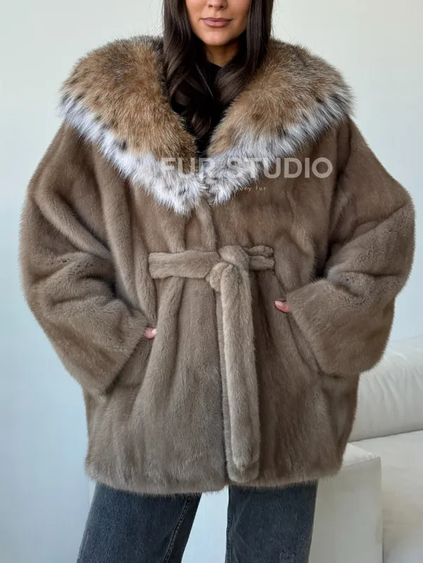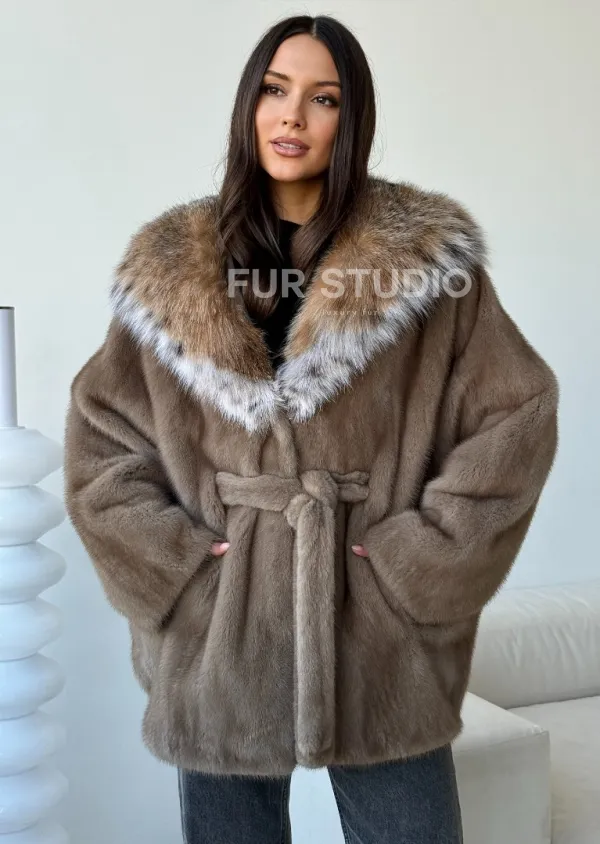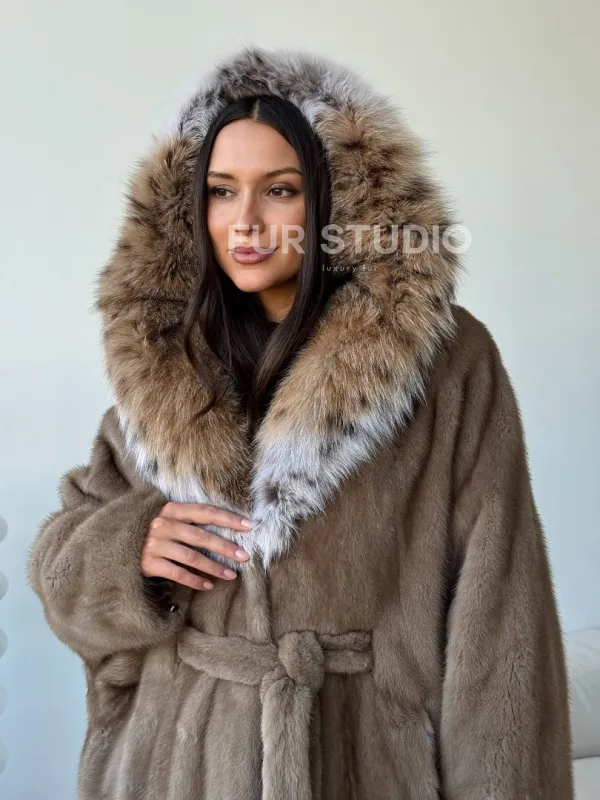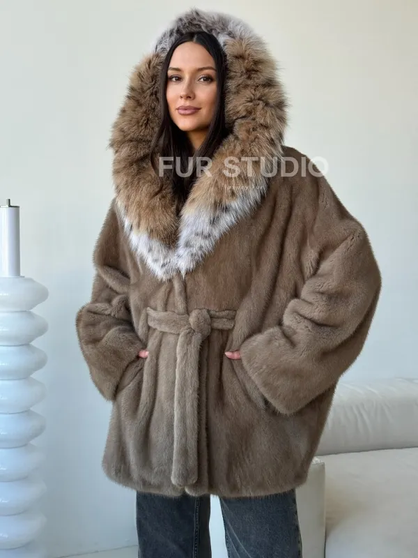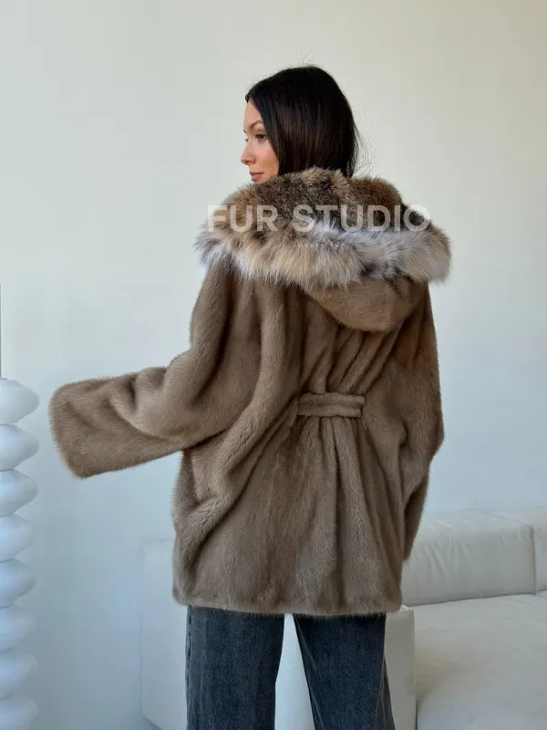 Норка - шуба летучая мышь с капюшоном рысь 102509