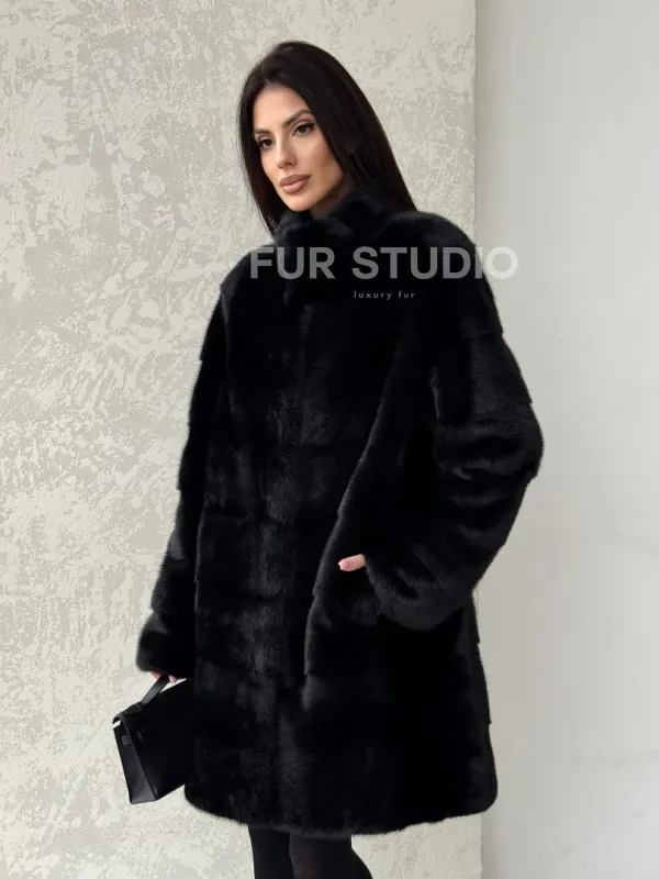 Норковая шуба в черном цвете воротник стойка доступна для покупки в нашем шоуруме Furs Studio в . У нас так же есть доставка во все города России. Добавьте немного роскоши в свой гардероб с этой шубой, которая будет служить вам многие годы.