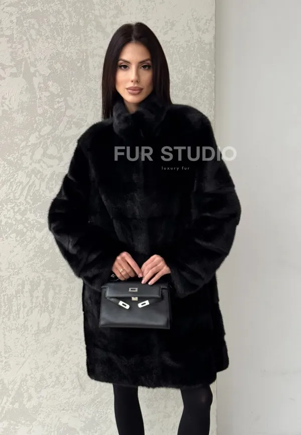Норковая шуба в черном цвете воротник стойка 100105