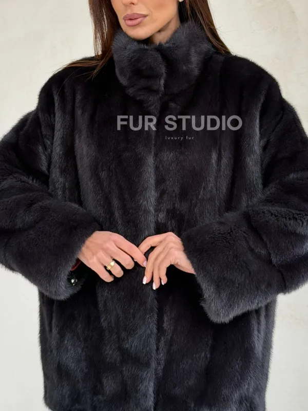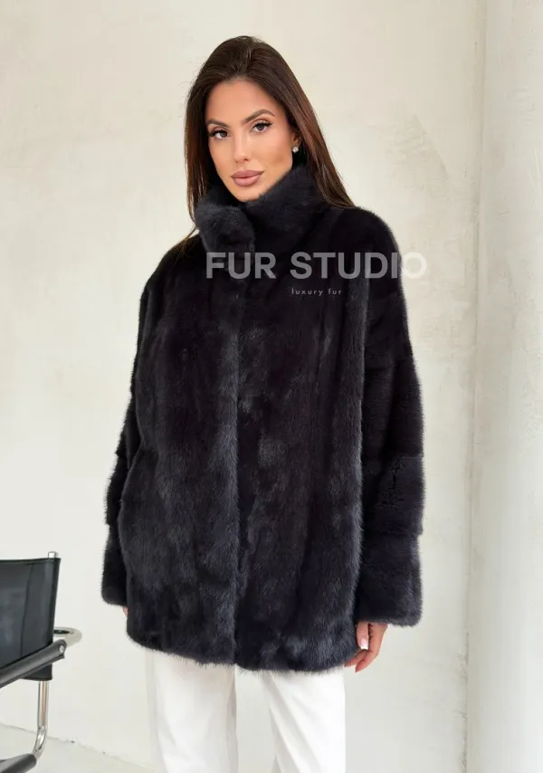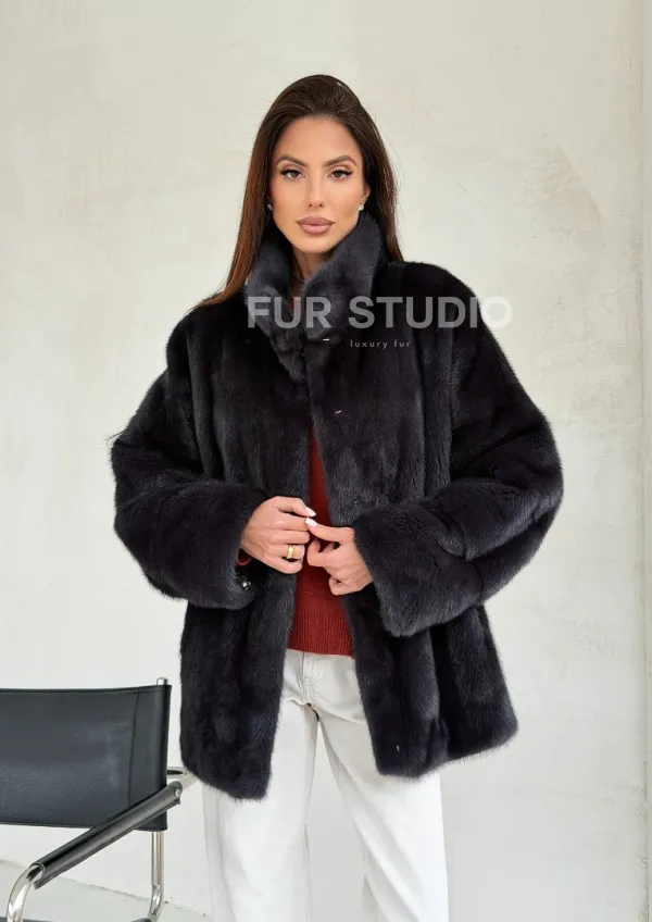 Норковый полушубок графит - стойка воротник 102702
