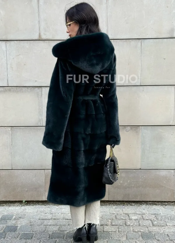 Шуба из аукционной норки NAFA с капюшоном 101020