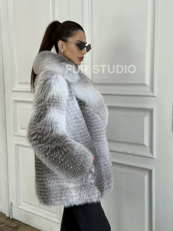 Шуба из меха арктической лисы - серая 100660