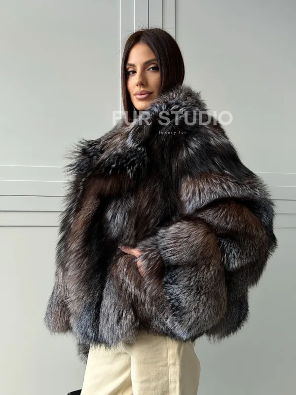 Мех данной шубы лиса, цвет серый. Предлагается в размерах от 40 до 48. Длина модели 55-60 см, что выгодно подчеркивает фигуру девушек. Эта модель идеально подойдет для девушек и женщин, предпочитающих роскошные натуральные меха.