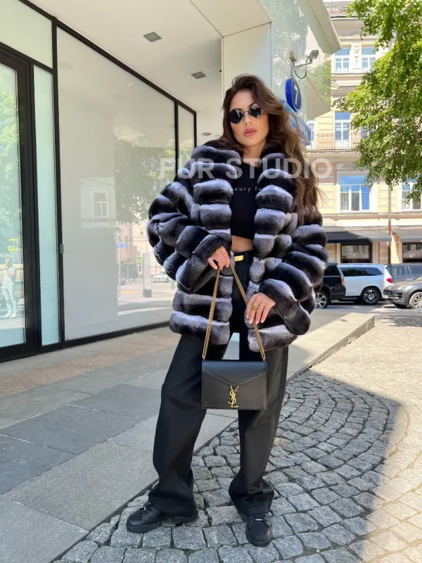 Роскошная расцветка изделия выгодно оттенит цвет волос и глаз владелицы. Модель подходит под стиль casual, сочетается с вечерним туалетом. Нежный мех удивительно теплый, что гарантирует комфортную температуру тела в любую непогоду. Купить шубу из меха шиншиллы с шалевым воротником могут женщины, которые привыкли ни в чем себе не отказывать.