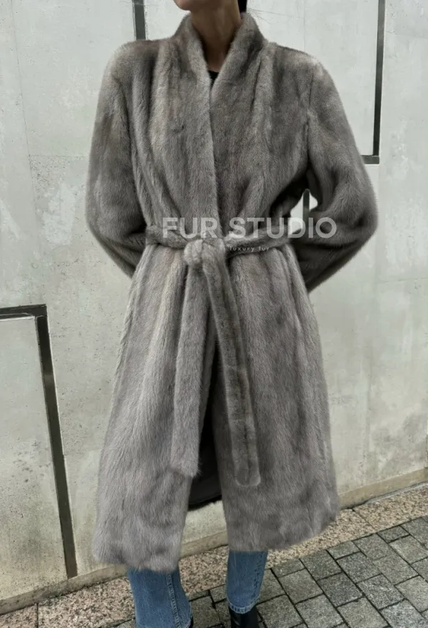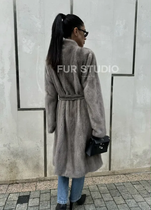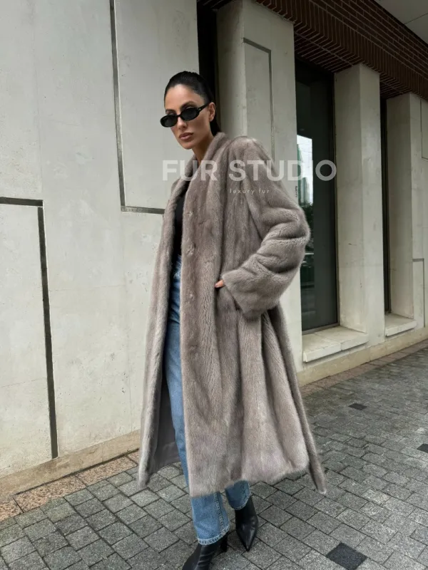 Мех данной шубы аукционная норка, цвет серый. Предлагается в размерах от 42 до 50. Длина модели 105-110 см, что выгодно подчеркивает фигуру девушек. Эта модель идеально подойдет для девушек и женщин, предпочитающих роскошные натуральные меха.