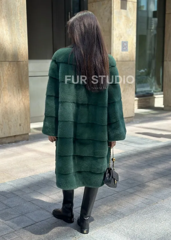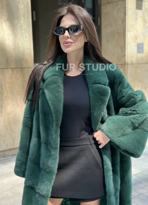 Зеленая шуба мех NAFA английский воротник доступна для покупки в нашем шоуруме Furs Studio в . У нас так же есть доставка во все города России. Добавьте немного роскоши в свой гардероб с этой шубой, которая будет служить вам многие годы.